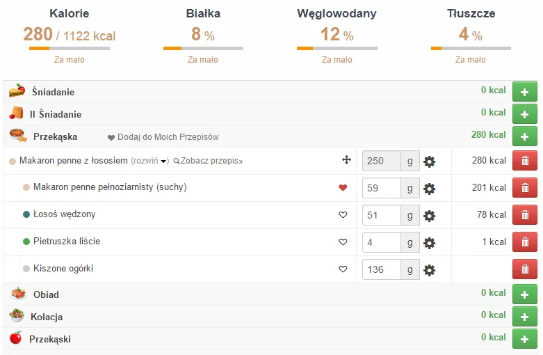 | Surowy makaron penne | 263 kcal |